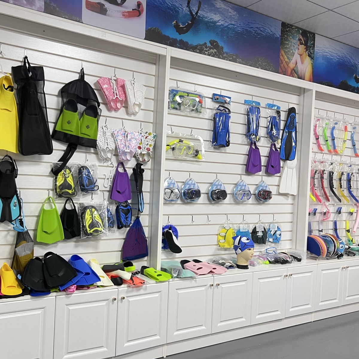 Una gran variedad de equipos de natación y buceo